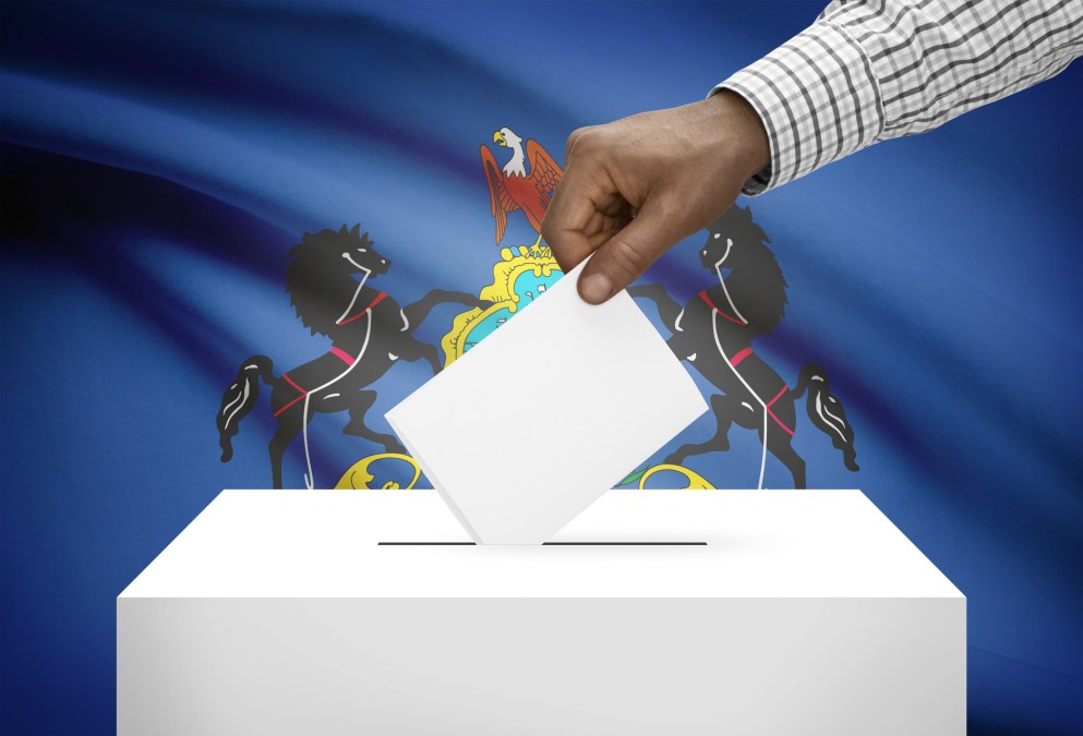 Ballot box with Pennsylvania state flag on background